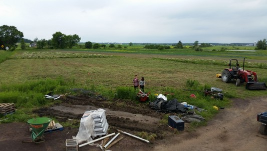 En 2014, nous passons à 200 clients. C'est alors que nous achetons une herse rotative pour le tracteur qui nous permet de préparer la terre bien plus rapidement. Le motoculteur BCS est mis de plus en plus de côté. La saison se passe bien. Les parties du champ non-drainée nous posent encore problème. Nous finissons donc le nivelage d'une autre parcelle afin de préparer le drainage final.
